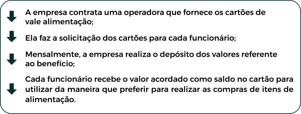 Deste modo, o vale alimentação funciona da seguinte maneira: